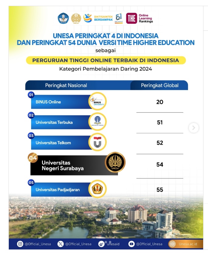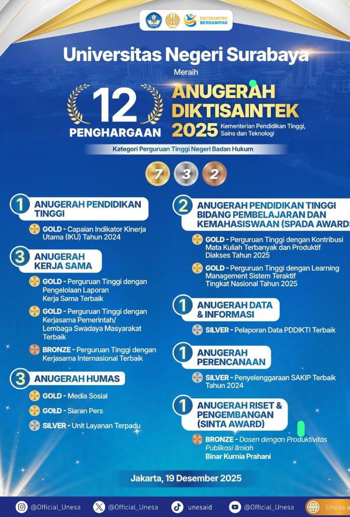 Universitas Negeri Surabaya (UNESA) kembali menorehkan