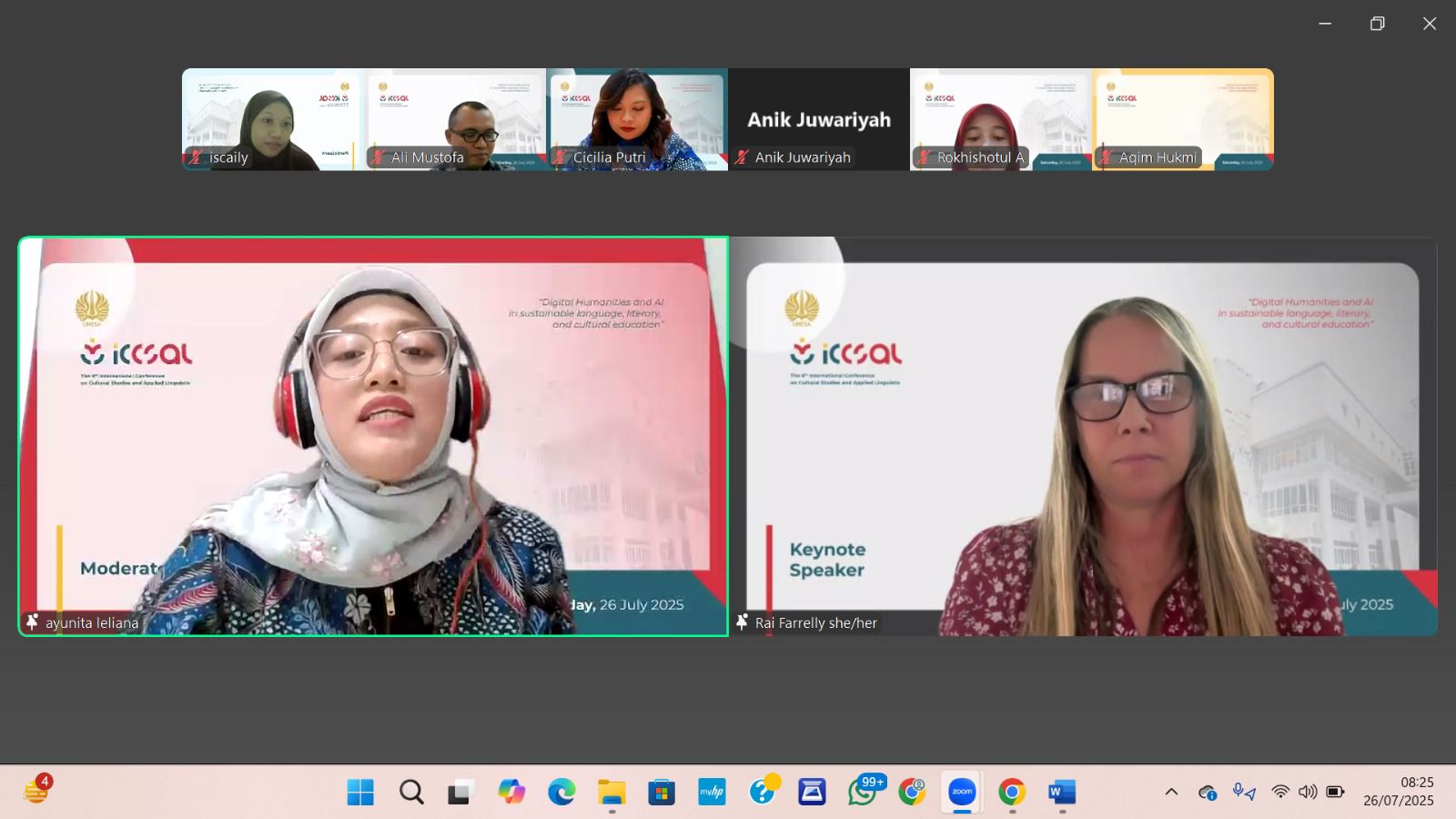 Pada hari Sabtu, 19 Oktober 2024, melalui platform Zoom Meeting, telah sukses diselenggarakan International Conference on Language and Cultures 2024 dengan tema yang sangat relevan: "Exploring AI's Role in Shaping the Futu